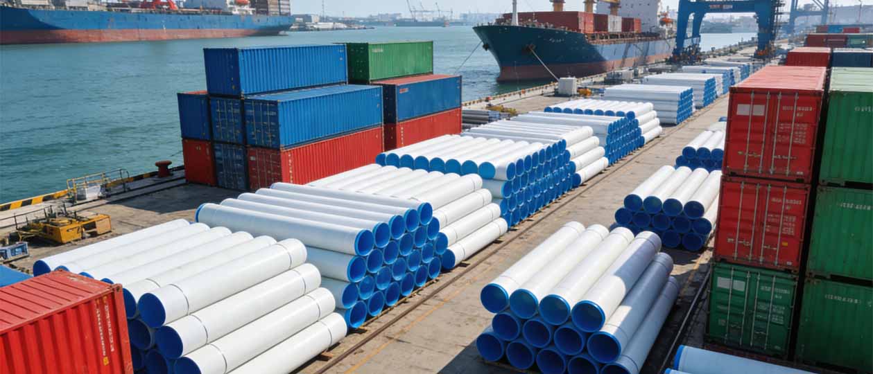 HDPE and PVC pipes are large‑volume, long‑length products that require careful handling and structured logistics planning. From loading and packaging to international transportation and delivery, each step is coordinated to reduce risk during transit and minimize disruption to on‑site construction. Our logistics approach focuses on predictability, safety, and alignment with project progress.